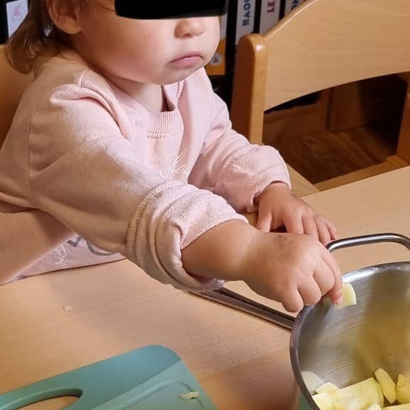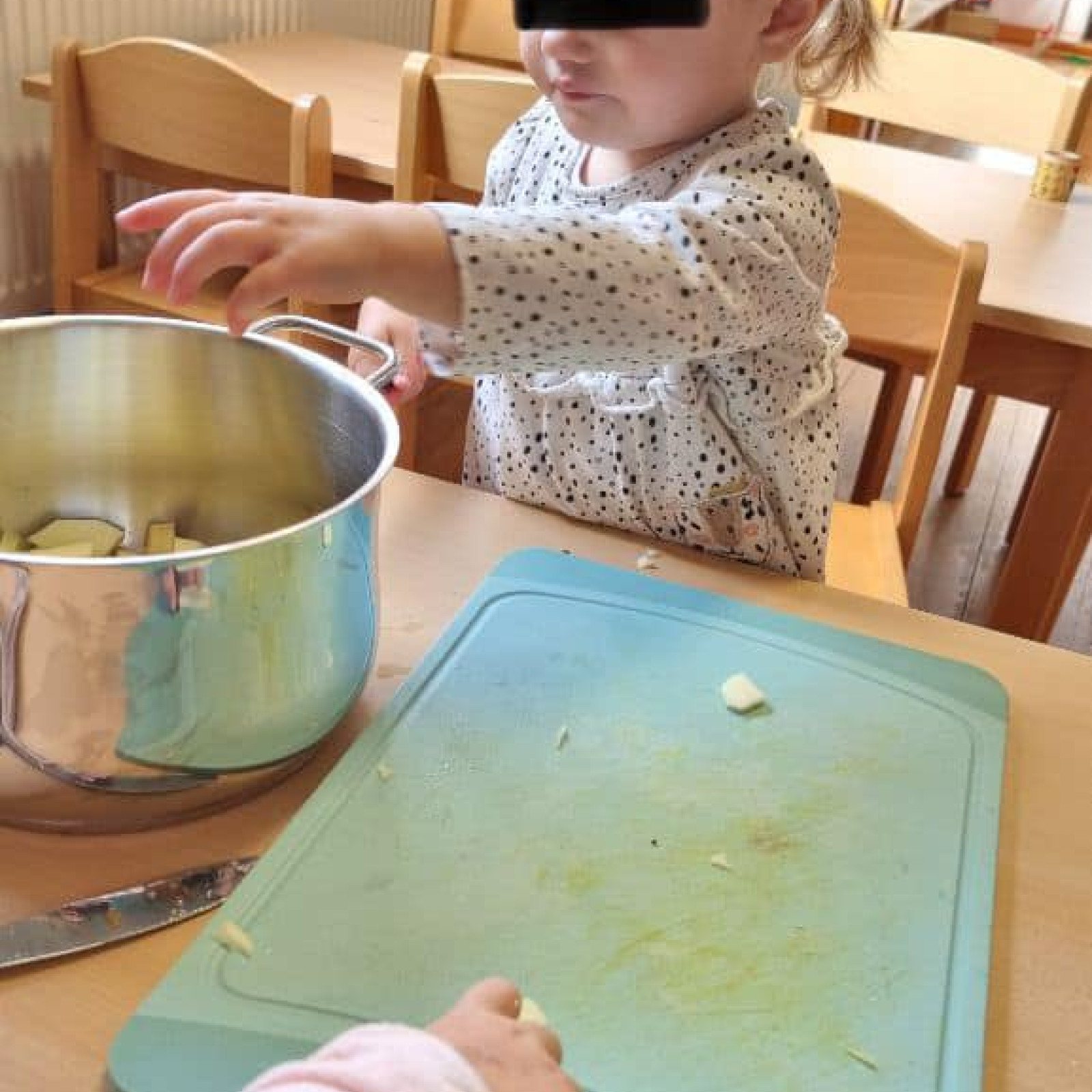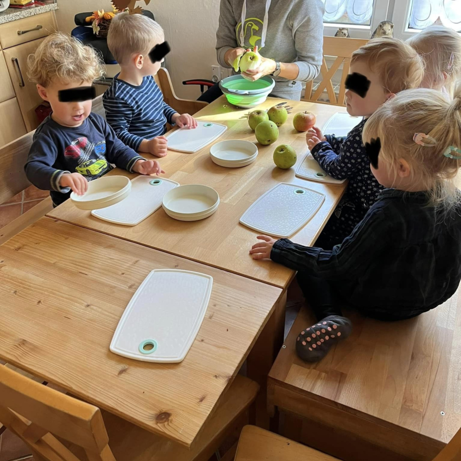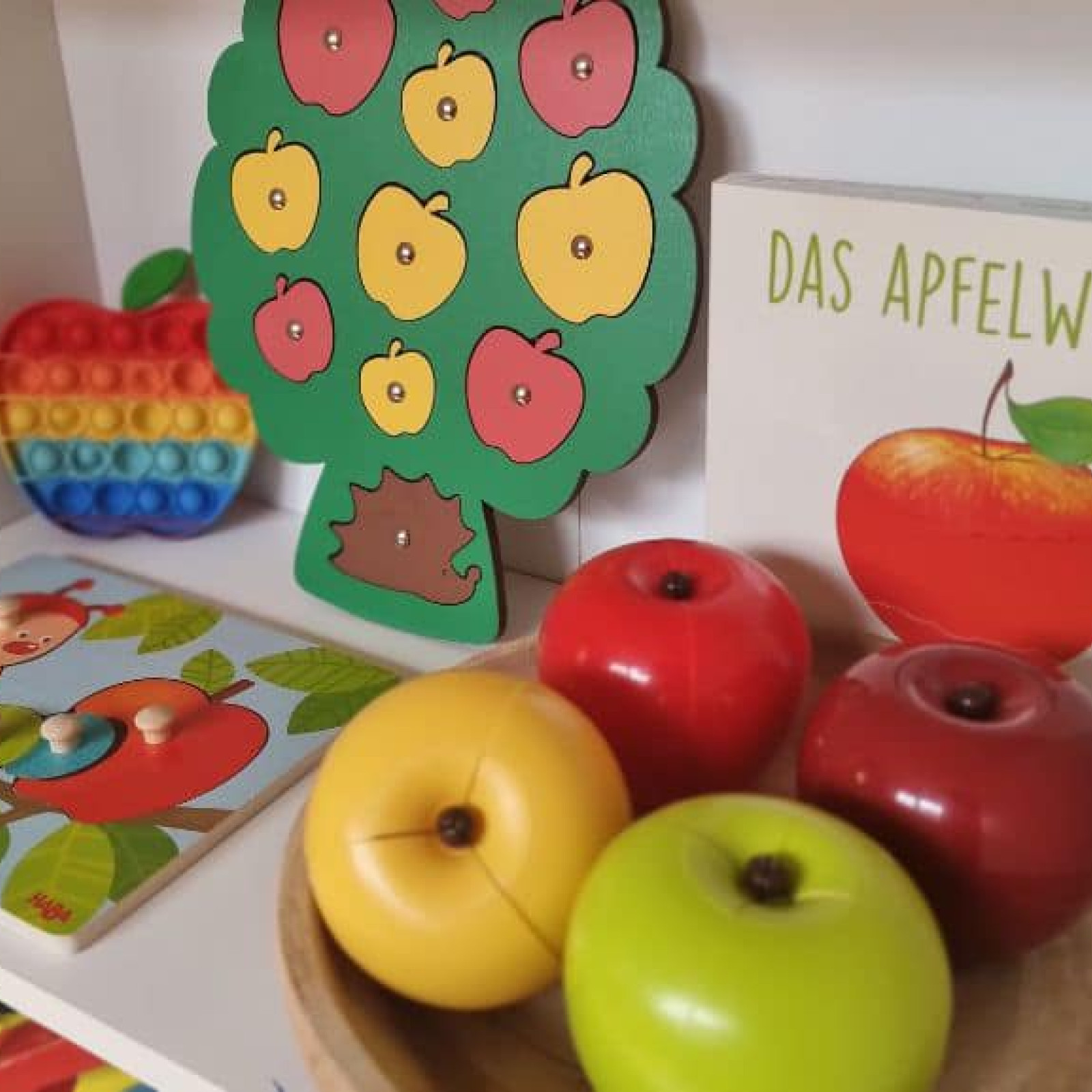Wir hatten unseren Kennenlernelternabend und sind mit unserem Herbstthema: "Apfel" gestartet. Alles steht seit geraumer Zeit also im Zeichen des Apfels: Es wurden Äpfel gebastelt, Apfelkuchen gebacken, Apfelmuß gekocht und im Regal wurde ein extra "Apfel-Fach" mit Material rund um den Apfel eingerichtet. Auch im Popokreis war alles darauf abgestimmt. Lieder wie : "ich hol mir eine Leiter und stell sie an den Apfelbaum" und "In meinem kleinen Apfel" waren an der Tagesordnung. Auch wurden passende Geschichten über die Erzählschiene oder das Kamishibai präsentiert. Generell werden natürlich auch aktuell typisch herbstliche Lieder und Spiele mit aufgenommen. So zum Beispiel das Lied "Der Herbst ist da", oder aber das absolute Lieblingsangebot der Kinder: "Der Igel, der Igel, dort unterm Blätterhügel"