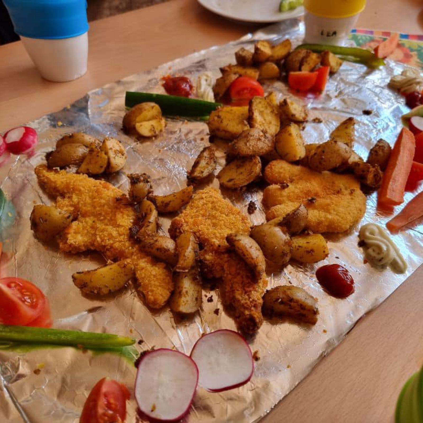 An diesem Tag haben wir wirklich viel erlebt: Wir haben zu Partymusik getanzt, hatten ein köstliches Frühstück, haben Spiele gespielt, haben unsere Kostüme bei einem Spaziergang ausgeführt und schlussendlich gab es zu Mittag das große Räuberessen. Was für ein tolles Erlebnis für unsere Wichtel: Die Tische ausgelegt mit Alufolie, das Essen wild darauf verteilt und jeder darf sich das (mit den Fingern) aus der Mitte nehmen, was er möchte. Das erlebt man auch nicht alle Tage.