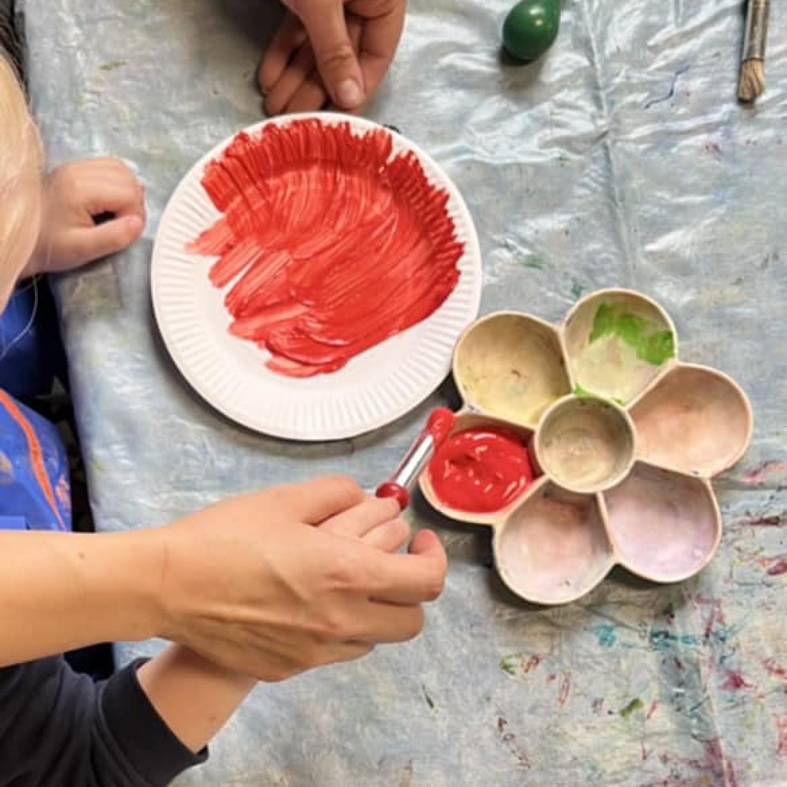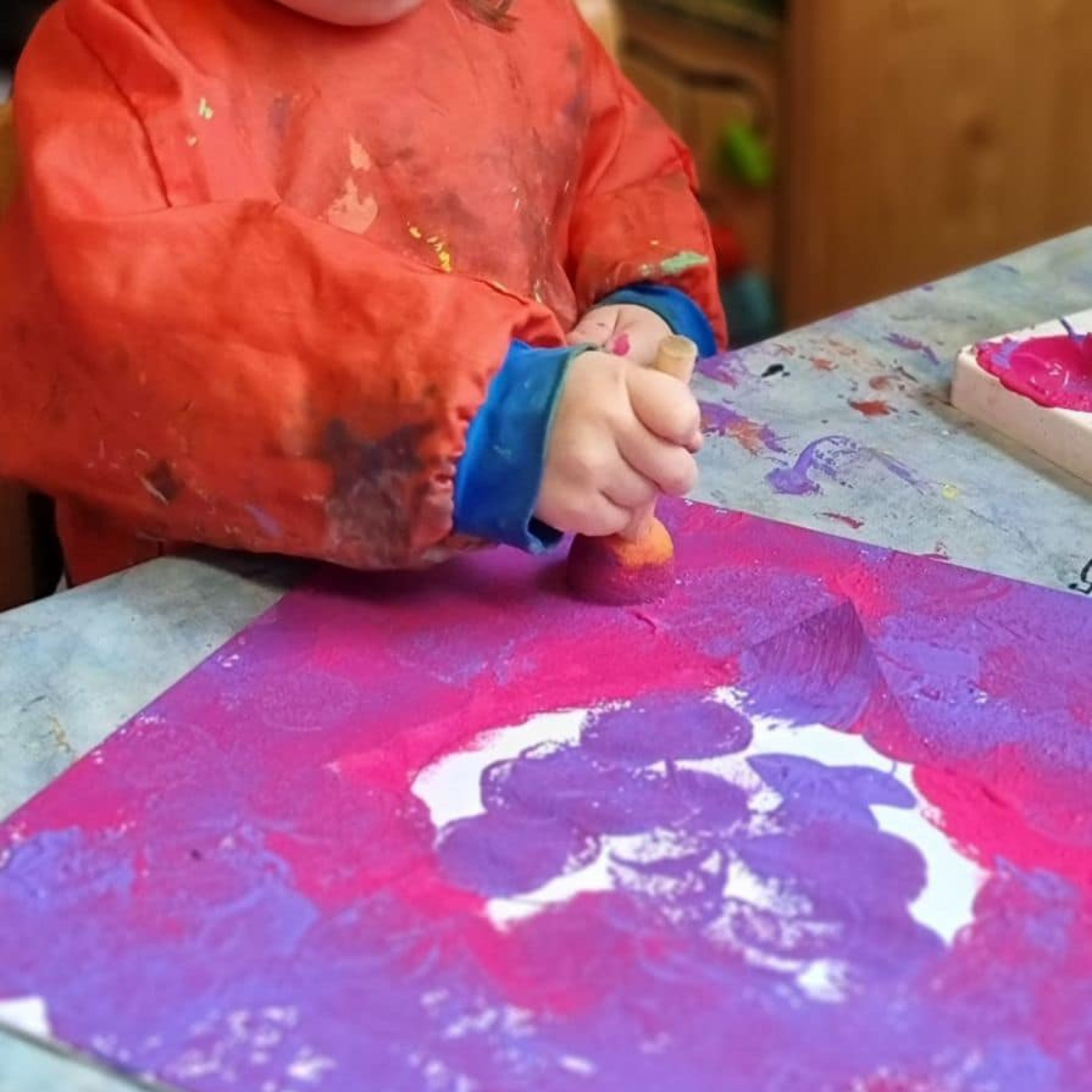 Ein weiteres Ereignis in den letzten Wochen war das Basteln der Muttertags- und Vatertagsgeschenke. In diesem Jahr haben die Kinder sich drei Farben aussuchen dürfen und es wurden Herzen getupft. Eines für die Mama und eines, passend dazu für den Papa. Das Gestalten der Bilder war für die Kinder ein großes Highlight und alle waren voll bei der Sache.