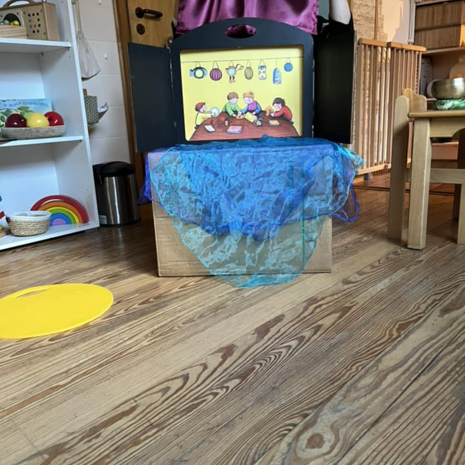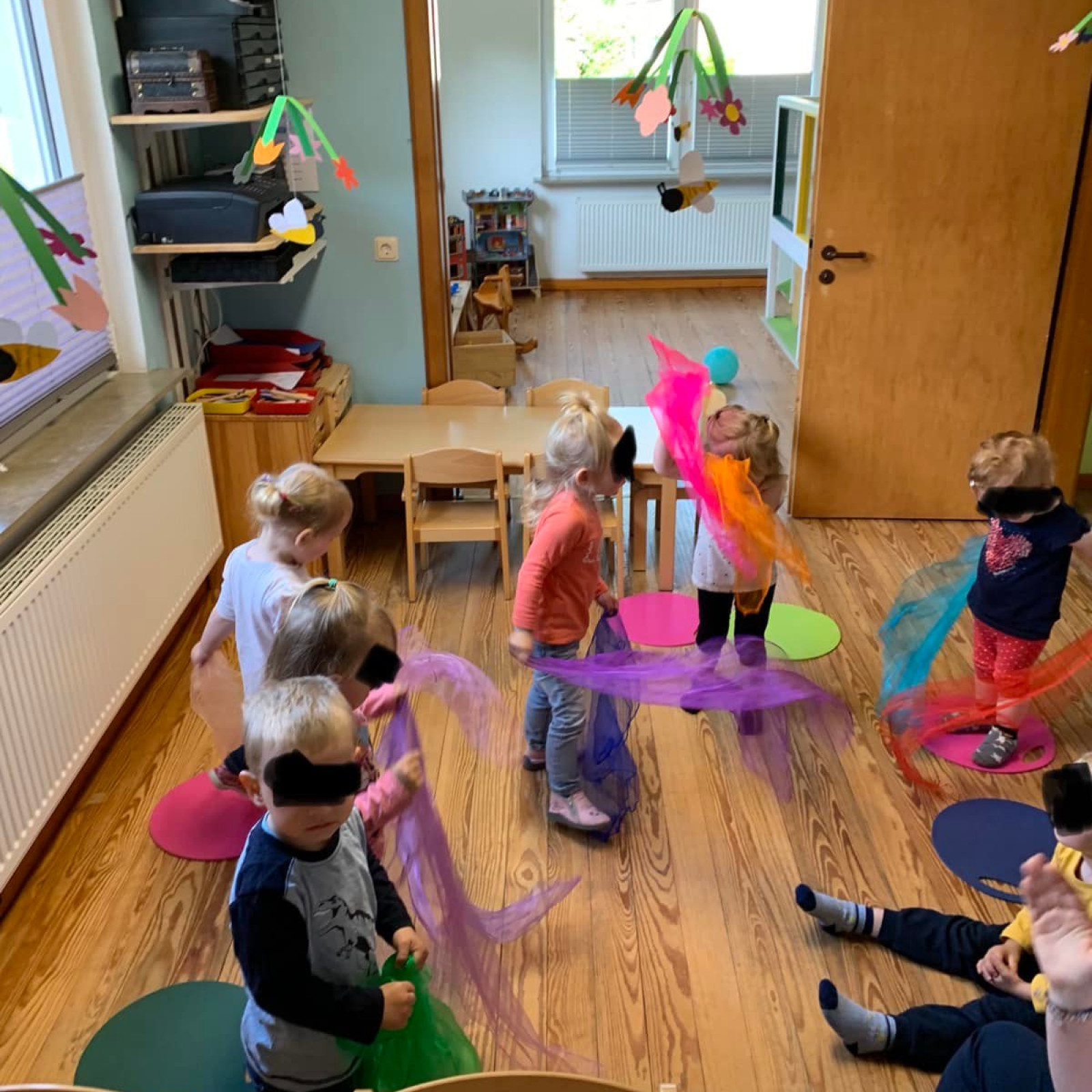 Erst letzte Woche haben wir neben der hängenden Dschungeldeko unsere neue Fensterdeko abgeschlossen. Die grünen Faden-Vorhänge in den Türen sind bei den Kindern besonders beliebt. Nach anfänglicher Scheu hindurchzugehen , sind sie nun bei allen ein Highlight. Da wird durchgegangen und gefühlt, was das Zeug hält.